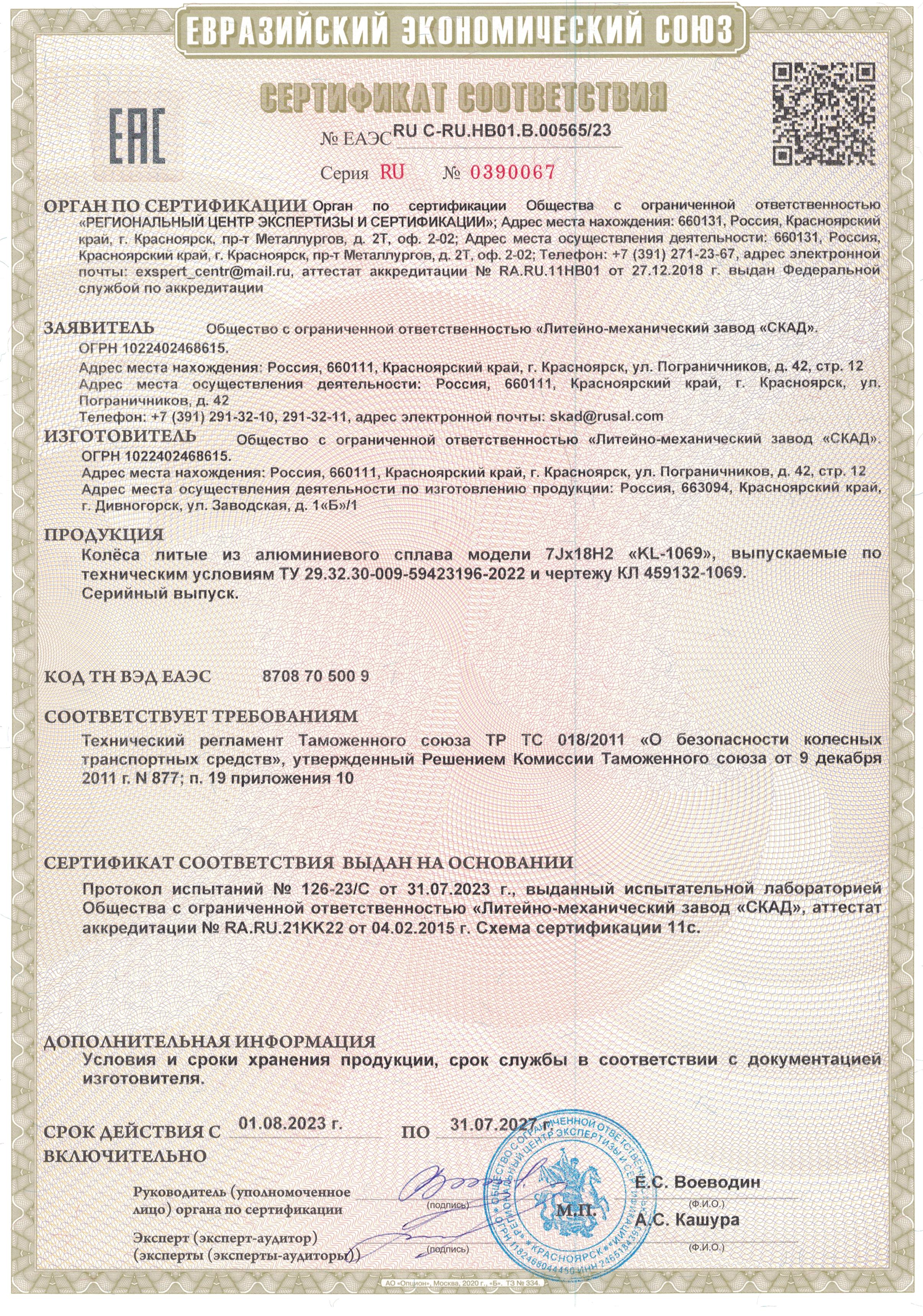 Сертификаты SKAD Original