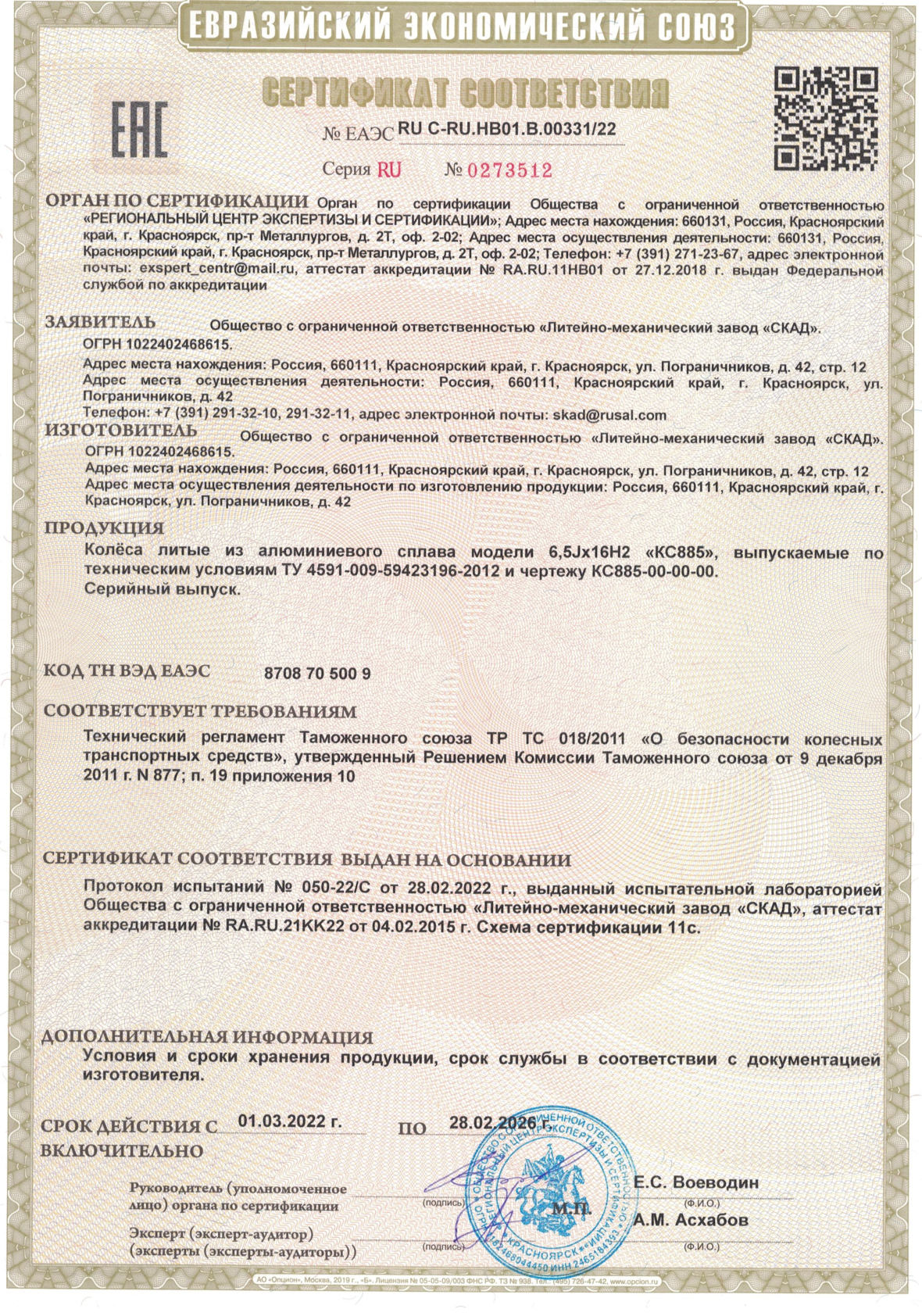 Отзывы о товаре Катар (КС885) 6.500xR16 5x114.3 DIA67.1 ET45 Хай вэй