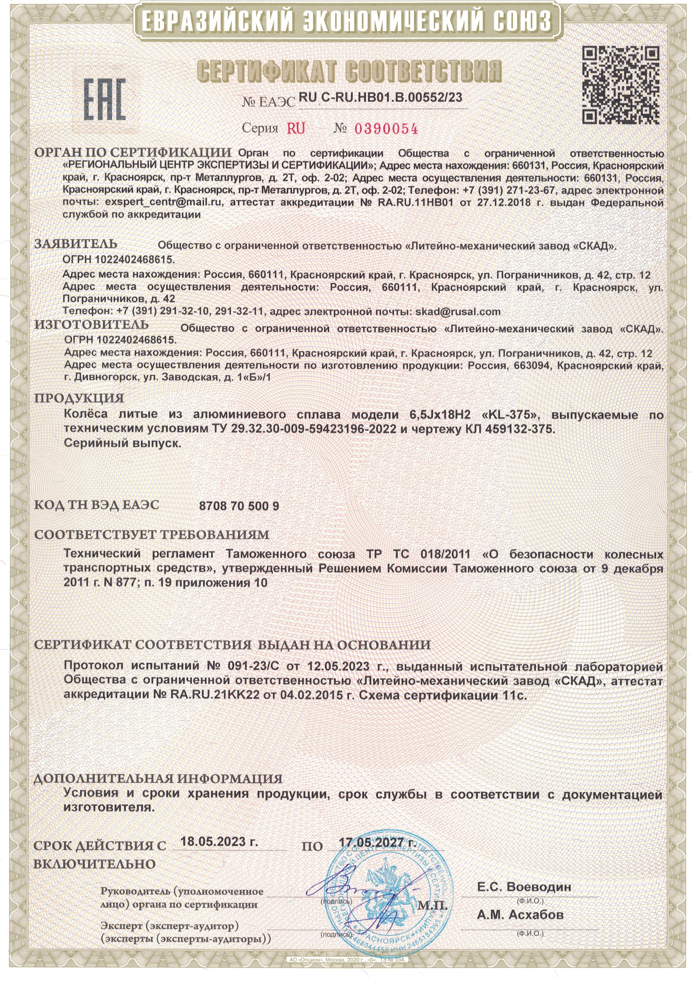 Приобретайте диски SKAD Original KL-375 (18_Haval H3) 6.500xR18 5x114.3 DIA66.6 ET34 напрямую от производителя из Сибири. Все представленные в ассортименте диски сертифицированы.