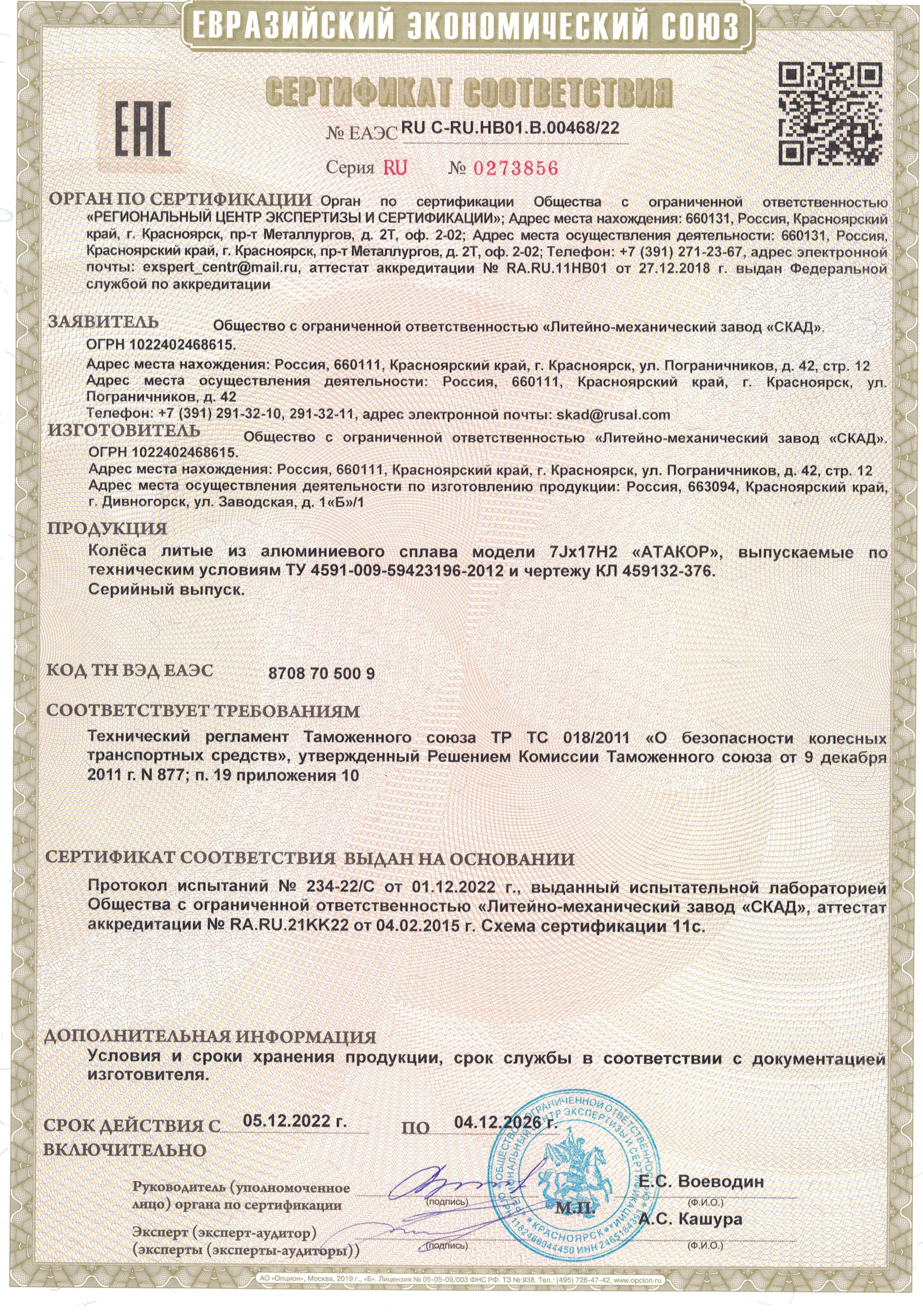 Приобретайте диски SKAD АТАКОР 7.000xR17 5x115 DIA70.2 ET43 напрямую от производителя из Сибири. Все представленные в ассортименте диски сертифицированы.