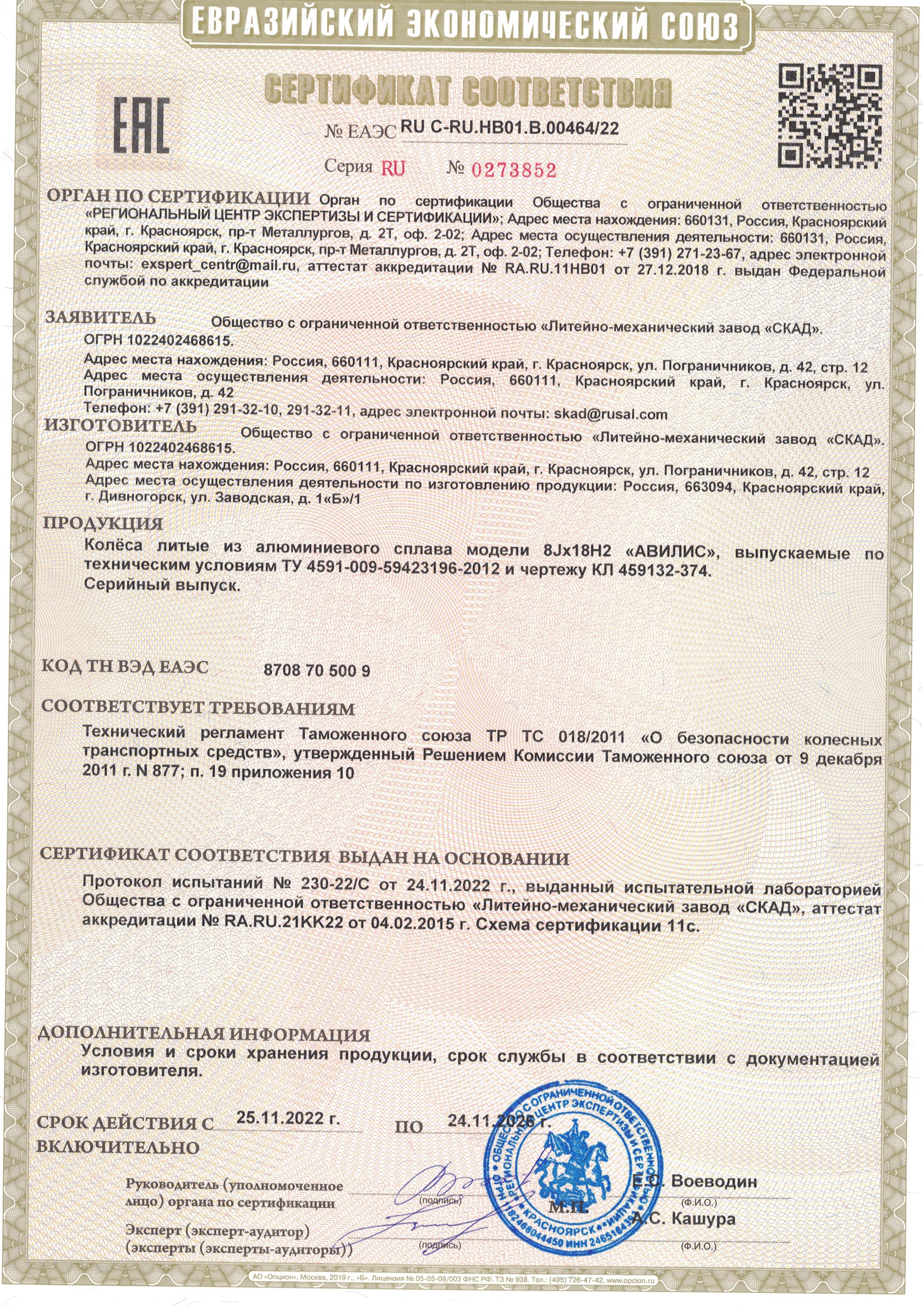 Приобретайте диски SKAD АВИЛИС 8.000xR18 6x139.7 DIA100.1 ET36 напрямую от производителя из Сибири. Все представленные в ассортименте диски сертифицированы.