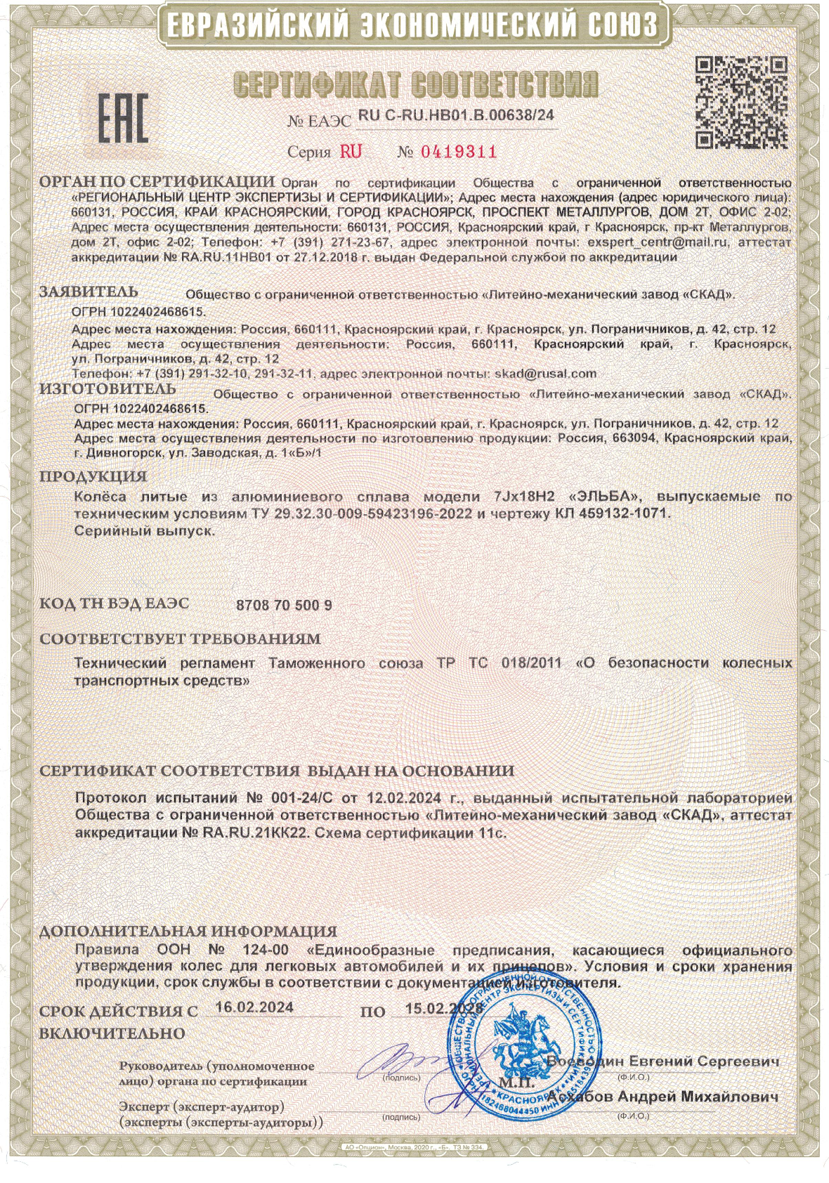 Приобретайте диски SKAD Эльба 7.000xR18 5x100 DIA57.1 ET38 напрямую от производителя из Сибири. Все представленные в ассортименте диски сертифицированы.