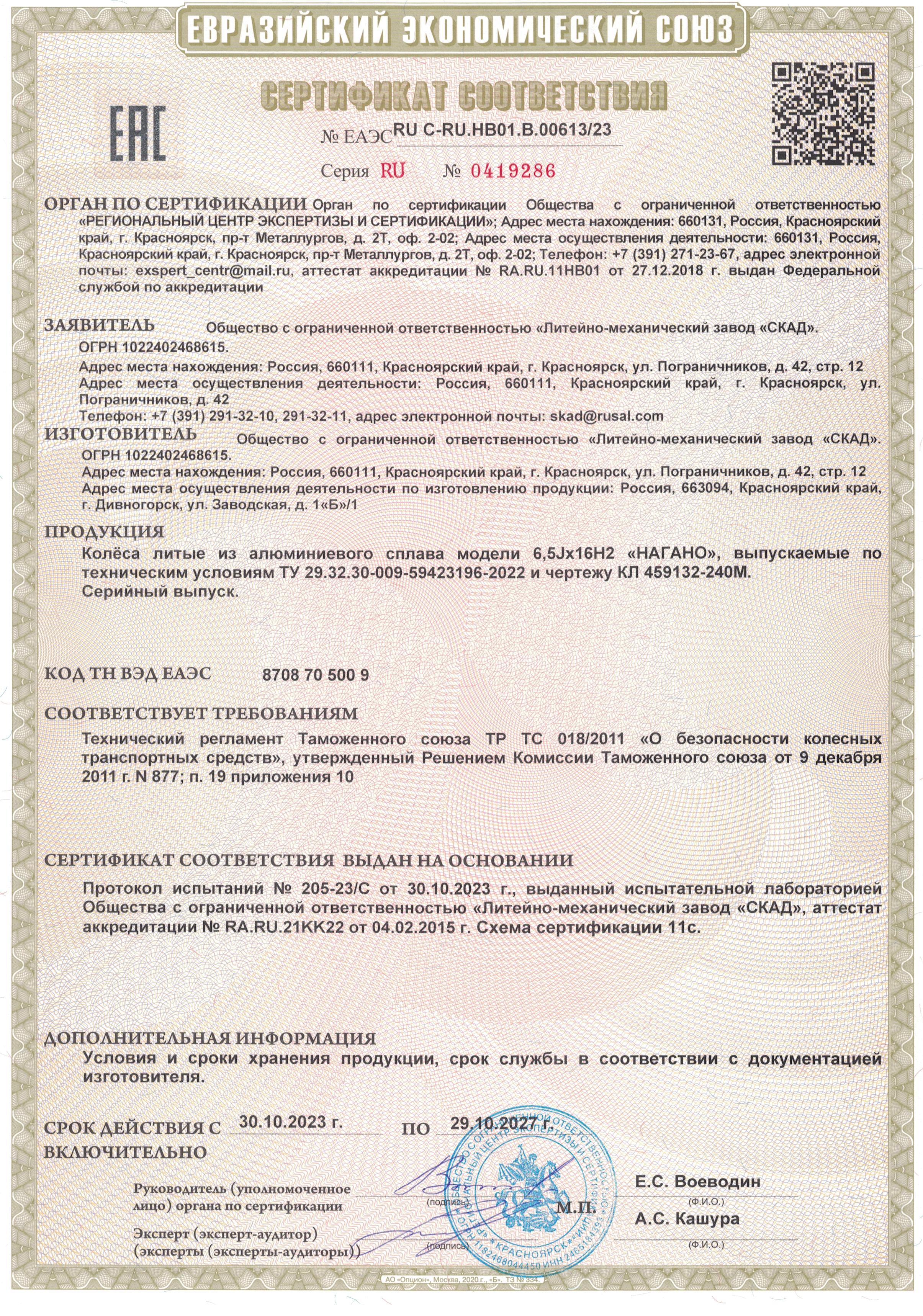 Приобретайте диски SKAD НАГАНО 6.500xR16 5x114.3 DIA67.1 ET45 напрямую от производителя из Сибири. Все представленные в ассортименте диски сертифицированы.