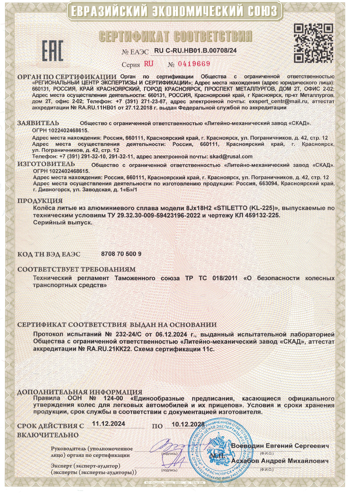 Приобретайте диски SKAD STILETTO 8.000xR18 5x108 DIA67.1 ET40 напрямую от производителя из Сибири. Все представленные в ассортименте диски сертифицированы.
