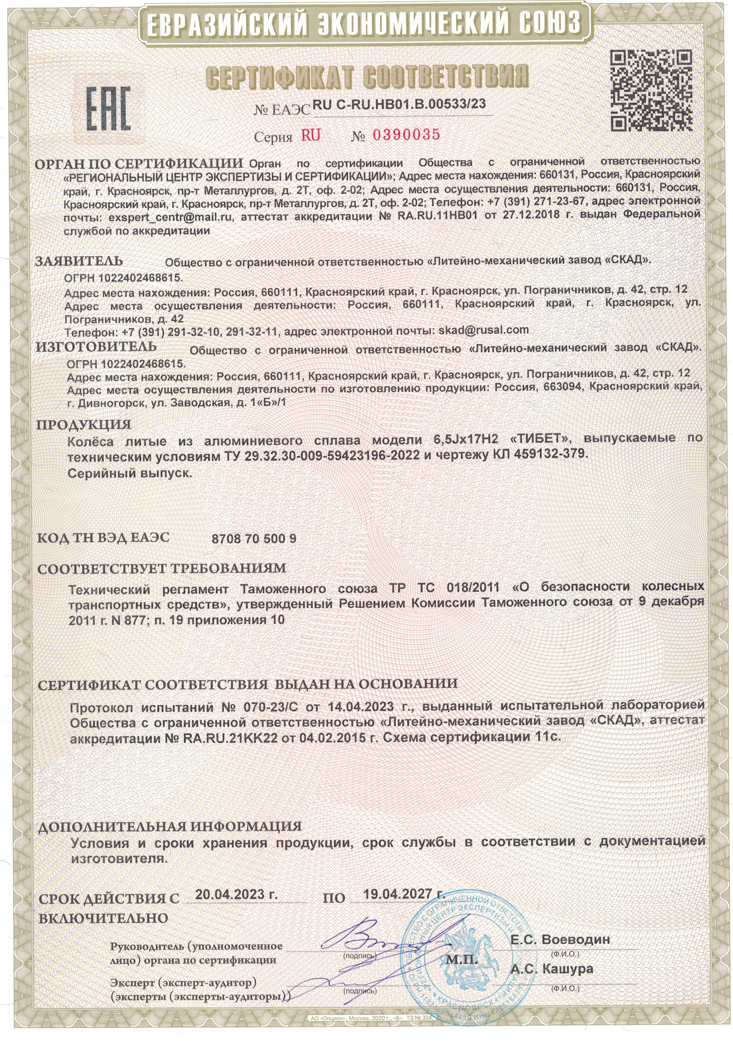Приобретайте диски SKAD ТИБЕТ 6.500xR17 5x105 DIA56.6 ET38 напрямую от производителя из Сибири. Все представленные в ассортименте диски сертифицированы.