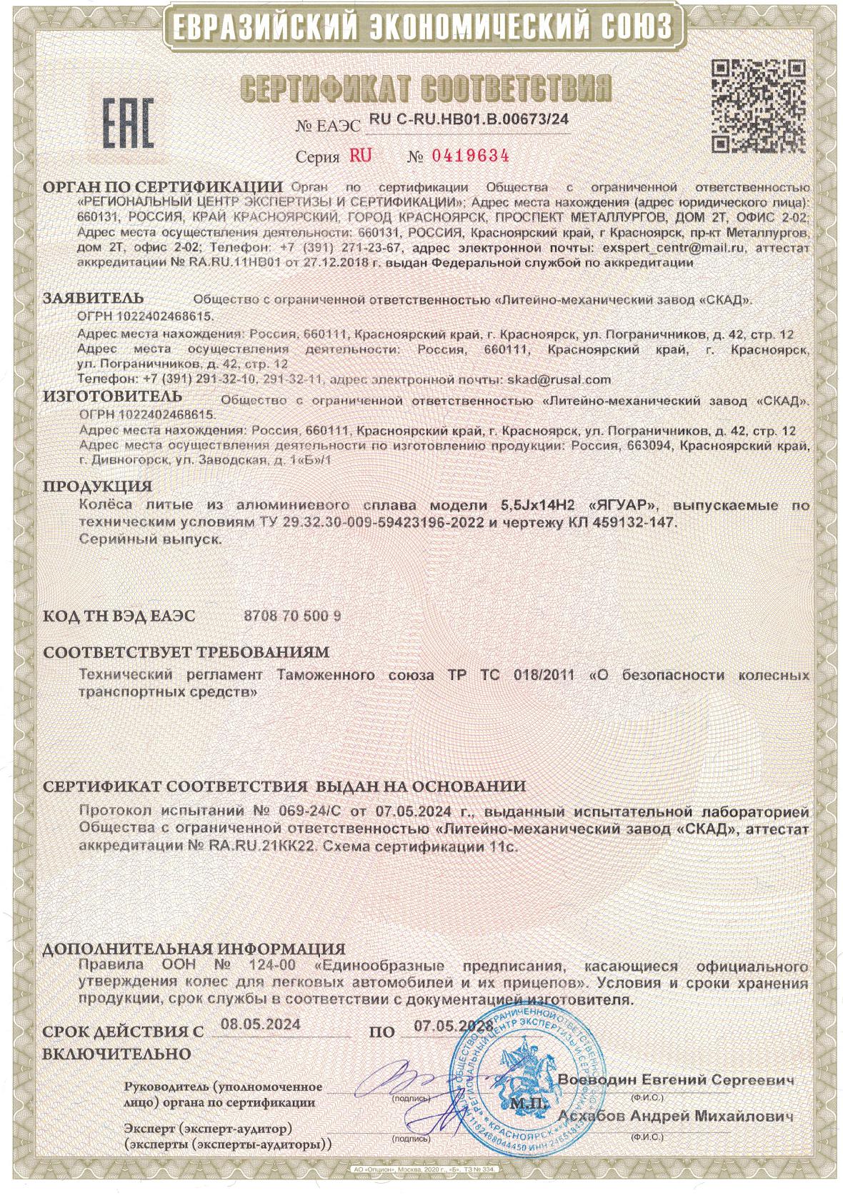 Приобретайте диски SKAD ЯГУАР 5.500xR14 4x100 DIA67.1 ET38 напрямую от производителя из Сибири. Все представленные в ассортименте диски сертифицированы.