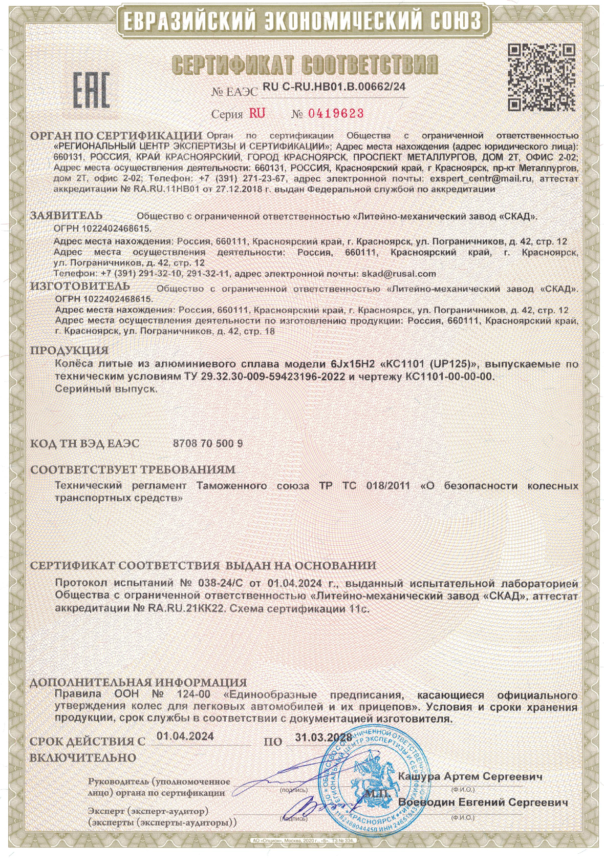 Приобретайте диски WUP Up125 6.000xR15 4x100 DIA67.1 ET35 напрямую от производителя из Сибири. Все представленные в ассортименте диски сертифицированы.